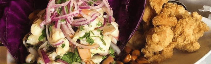 Ceviche de Pescado Crocante de Chicharron de Pescado/ Calamares y Yuca Frita